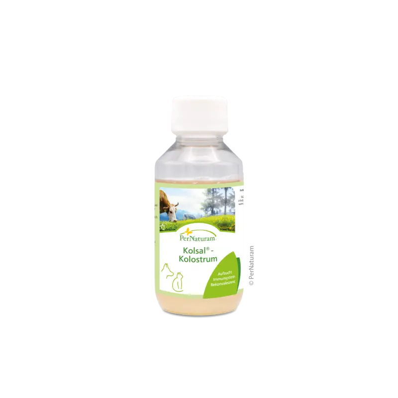 Kolsal-Kolostrum-Extrakt ist das Beste, was Sie zur Unterstützung des Immunsystems geben können. Es enthält Antikörper (Immunglobuline) zum Schutz vor Krankheiten, Wachstumsfaktoren für die Zellbildung, die natürlichen Antibiotika Lactoferrin und Transferrin, alle Aminosäuren und Vitamine. Es wird eingesetzt vor und nach Operationen, Impfungen, bei Erkrankungen und zur Leistungssteigerung. Welpen, die nicht genug Muttermilch bekommen, überleben damit fast immer und entwickeln sich bestens. Es sollte als Zusatz zur Welpenmilch deshalb nie fehlen.