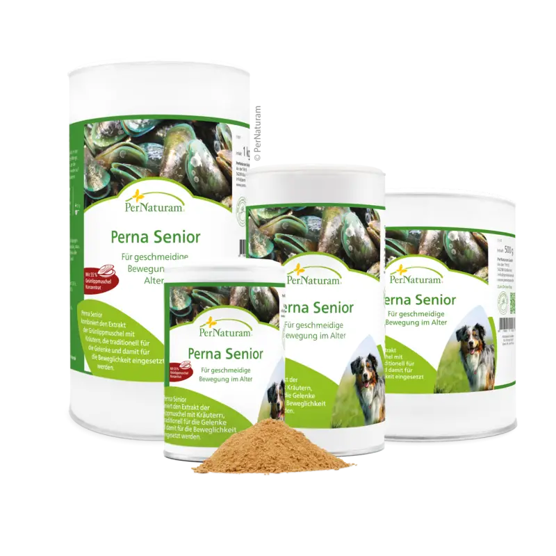 In Perna Senior ist der Muschelextrakt mit 55 % hochdosiert. Der Extrakt ist mit Kräutern kombiniert, die traditionell für die Gelenke und damit die Beweglichkeit eingesetzt werden. Wenn Ihr Hund diese Probleme noch nicht hat, freuen Sie sich - beugen Sie aber jetzt schon vor!